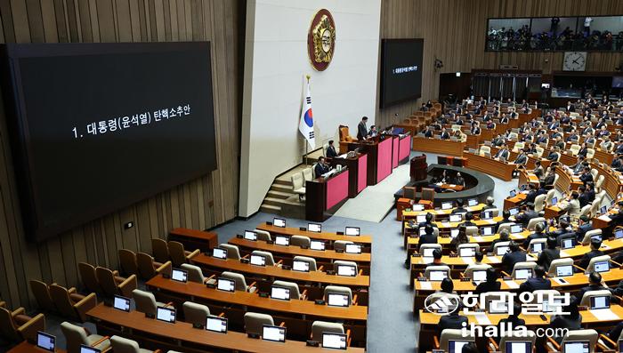 [한라일보] 국회는 14일 임시회 본회의를 개최, 윤석열 대통령 탄핵소추안을 상정, 재적의원 300명 중 204 명 찬성으로 통과시켰다.