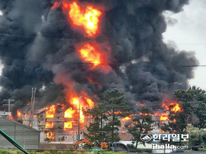 지난해 4월 발생한 제주시 화북공업지역 자동차 부품 대리점 화재. 한라일보DB