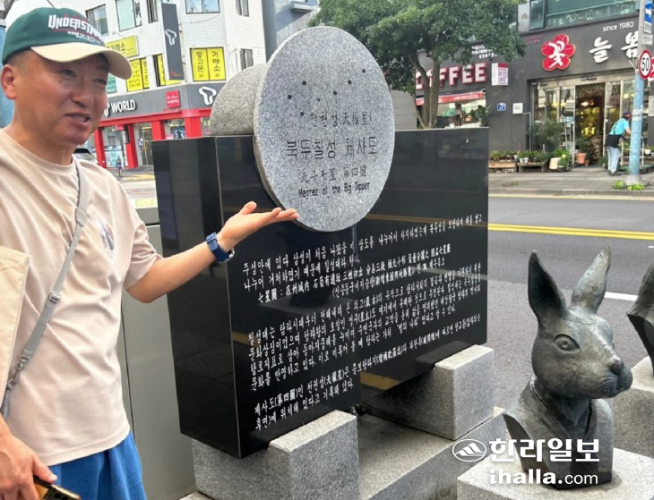 | 제주시 칠성대에 대해 설명 중인 왕준호 대표. 왕준호 대표 제공 |