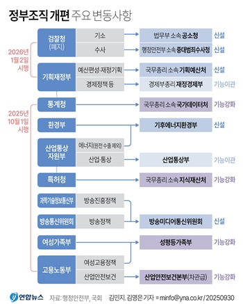 다만 검찰청 폐지와 기재부 분리 등 일부에는 유예 기간을 둔다.
