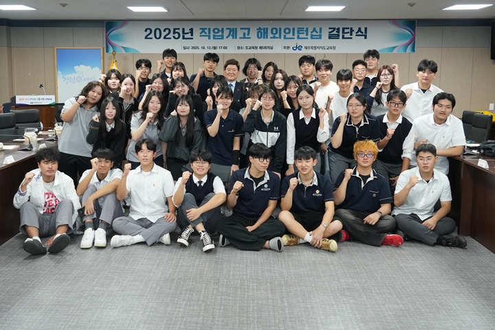 올해는 지난 5월 공모를 통해 서귀포산업고등학교와 한국뷰티고등학교가 학교 사업단으로 선정됐다. 그 외 7개 직업계고는 도교육청 주관 사업단으로 운영된다. 참가대상은 2~3학년 재학생 40명으로, 학생들은 지난 13일 도교육청 대회의실에서 '2025년 직업계고 해외인턴십 결단식'에 참여했다.