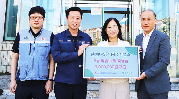 [한라일보] 초록우산 제주지역본부(본부장 김희석)는 지난 10일 한전KPS(주)제주사업소(소장 김완수)로부터 아동학습비 및 학습용품 300만원을 전달받았다.