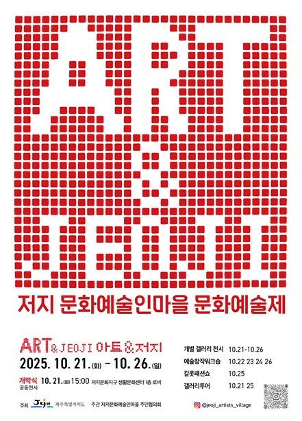 [한라일보] 제주시 한경면에 있는 저지 문화예술인마을에서 문화예술 프로그램이 펼쳐진다. 이달 21일부터 26일까지 6일간 열리는 '아트 앤 저지(ART&JEOJI) 2025' 행사다.