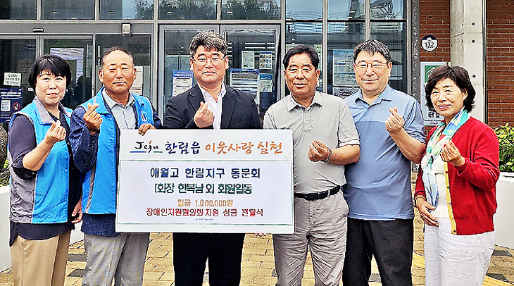 애월고 한림지구 동문회(회장 한복남)는 지난 14일 장애인지원협의회에 성금 100만원을 기탁했다.