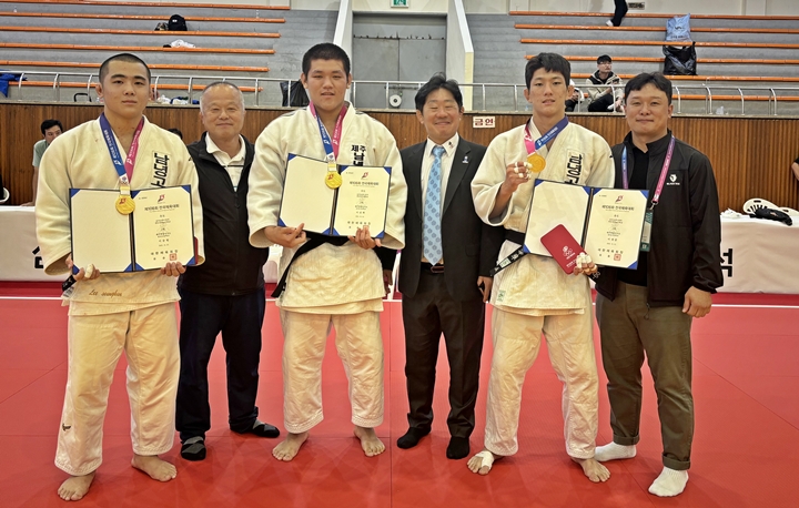 ▶유도 이현지 동생도 전국 제패= 유도에서도 제주선수단의 활약은 이어졌다. 전국체육대회에 첫 출전한 이진혁(남녕고1)은 부경대체육관에서 열린 남자18세이하부 개인전 무제한급에서 차민호(송도고3)과 접전 끝에 금메달을 목에 걸며, 누나 이현지(남녕고3)와 함께 제주 유도의 저력을 보여주는데 한 몫했다. 남자18세이하부 개인전 66kg이하급 이재준(남녕고3)과 개인전 90kg이하급에 출전한 이승헌(남녕고3) 역시 금메달을 각각 1개씩 획득, 현재까지 금4개 등 17개의 메달을 획득하며 효자종목으로서 역할을 제대로 해냈다.