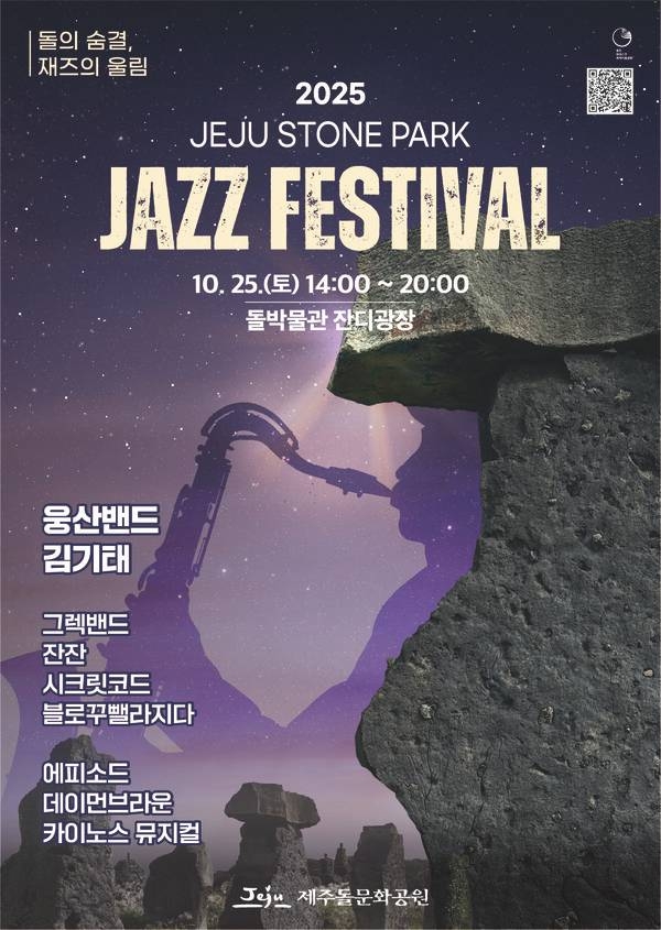 제주특별자치도 돌문화공원관리소는 이달 25일 오후 2시부터 오후 8시까지 돌문화공원 돌박물관 야외무대에서 제1회 재즈 페스티벌을 연다고 20일 밝혔다.