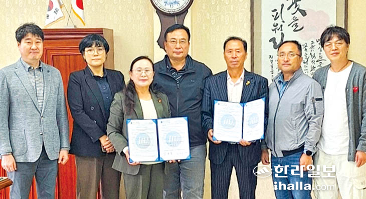 또 (유)한어울림은 해외 우수 인재를 발굴해 제주국제대학교 입학 지원 및 인력 양성에 기여하고, 졸업생들이 (주)휴먼에 100% 취업할 수 있도록 협력 등을 공동 추진하기로 했다.