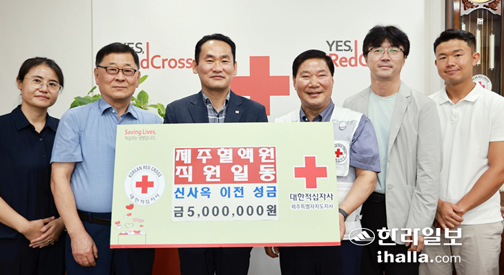 대한적십자사 제주특별자치도혈액원(원장 임정한)은 대한적십자사 제주특별자치도지사(회장 정태근)를 방문해 신사옥 이전성금 500만 원을 전달했다.