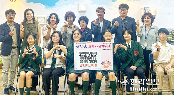 서귀포시 안덕면(면장 김태유)은 지난 17일 브랭섬홀 아시아(BHA) 국제학교의 봉사동아리 '프렌즈 오브 사계'(회장 하유정)와 사계리어촌계(계장 김기범)가 어려운 아동·청소년을 위해 기부금 300만원을 전달했다.