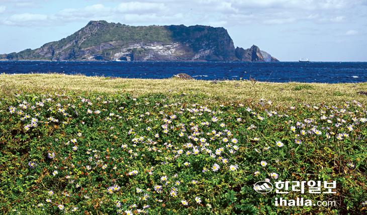 27일 서귀포시 성산읍 섭지코지 해안가에 만개한 갯쑥부쟁이가 성산일출봉과 어우러지며 한 폭의 유채화같은 풍경을 연출하고 있다. 강희만기자