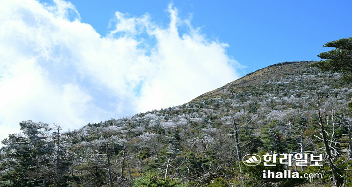 [한라일보] 아침 기온이 뚝 떨어진 제주 한라산 백록담에는 올가을 첫 ‘상고대’가 피면서 이른 겨울 분위기를 자아냈다.