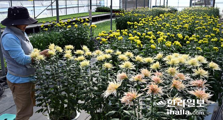 [한라일보] 28일 제주시 애월읍 신엄리 한 화원에 가을을 상징하는 꽃인 국화가 활짝 펴 고즈넉한 가을 분위기를 한껏 돋우고 있다. 강희만기자