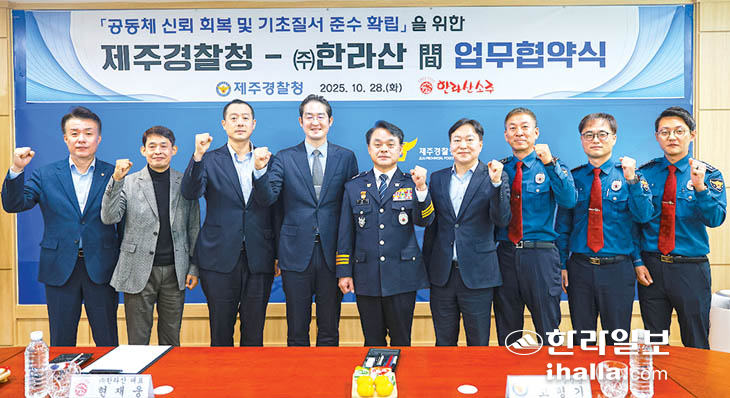 제주경찰청(청장 고평기)과 (주)한라산은 28일 경찰청에서 '공동체 신뢰 회복과 기초질서 준수 확립'을 위한 업무협약을 체결했다.