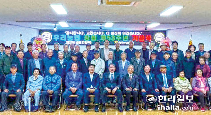 제주안덕농협(조합장 이한열)은 지난 27일 본점 대회의실에서 원로조합원과 역대조합장 및 임직원 등 100여명이 참석한 가운데 창립 53주년 기념행사를 개최했다.