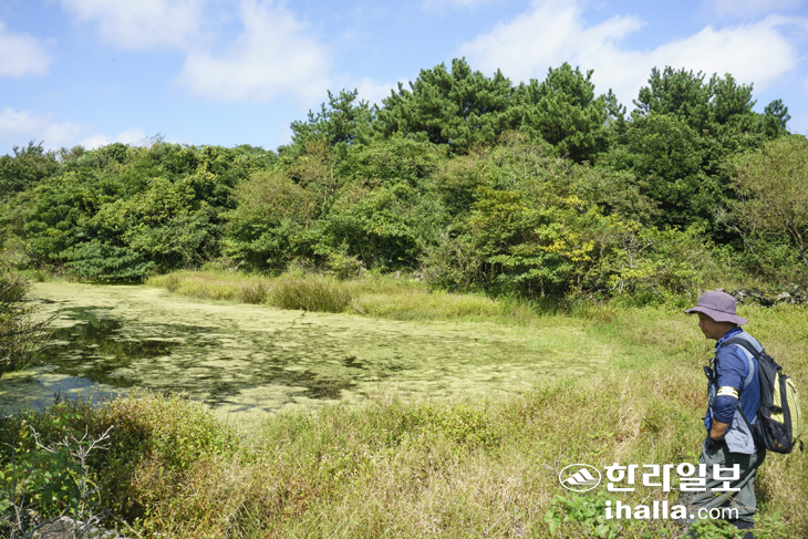 숲은 귀한 생명수도 품고 있다. 용암대지에 형성된 진남못은 빗물이 고여 만들어진 습지형 못이다. 해안에서 솟아나는 물을 용천수라 부르듯 산간 지역에서는 빗물을 모은 물을 봉천수라 불렀다고. 옛적 물이 귀했을 때는 못 둘레에 돌담을 쌓아 물통을 만들어 사람도 마시고, 가축들을 먹이기도 했다. 테우리들도 이곳에서 목을 축이고 몰고 온 소들을 풀어놓았을 터이다. 다만 이런 습지들이 점점 육상화 돼 사라지고 있다니 안타까운 마음이다.