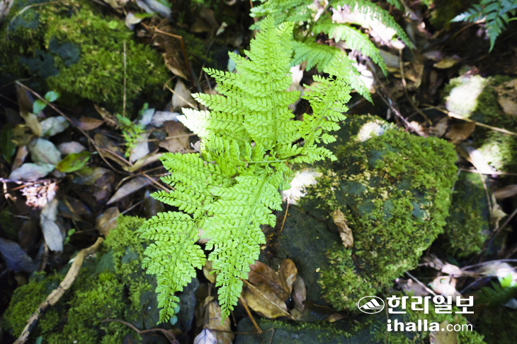 곶자왈공유화재단에서 매입해 관리하고 있는 수산 곶자왈은 평소 출입이 허용되지 않는 곳이다. 곶자왈 지대를 보호하기 위한 차원으로 이번 탐방을 위해 특별히 개방해 줬다. 사람 발길이 거의 닿지 않다 보니 숲 속은 천연 원시림이나 다름없다. 하늘을 가릴 정도로 무성하게 자란 나무 아래 고사리를 비롯한 양치식물들이 숲을 뒤덮고 있다. 이끼가 잔뜩 낀 바위투성이 환경 속에서도 굳건히 뿌리를 내린 나무들. 강인한 생명력 앞에서 마음이 한없이 겸허해진다. 울퉁불퉁한 돌무더기 길을 걷느라 걸음이 느려지기는 했지만 자연을 늘 많은 것을 깨닫게 한다. 걷는 내내 곶자왈 숲이 뿜어내는 맑은 공기가 폐부 깊숙한 곳까지 스며들었다.