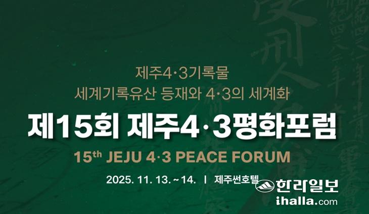 [한라일보] 제주4·3평화재단은 이달 13~14일 제주 썬호텔에서 '제주4·3 기록물 세계기록유산 등재와 4·3의 세계화'를 주제로 '제15회 제주4·3평화포럼'을 개최한다고 12일 밝혔다.
