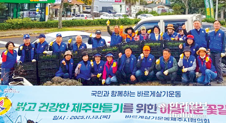 바르게살기운동제주시협의회(회장 강대규)는 13일 제주국제공항 입구에서 '밝고 건강한 제주만들기' 실천운동의 일환으로 꽃심기 활동을 전개했다.