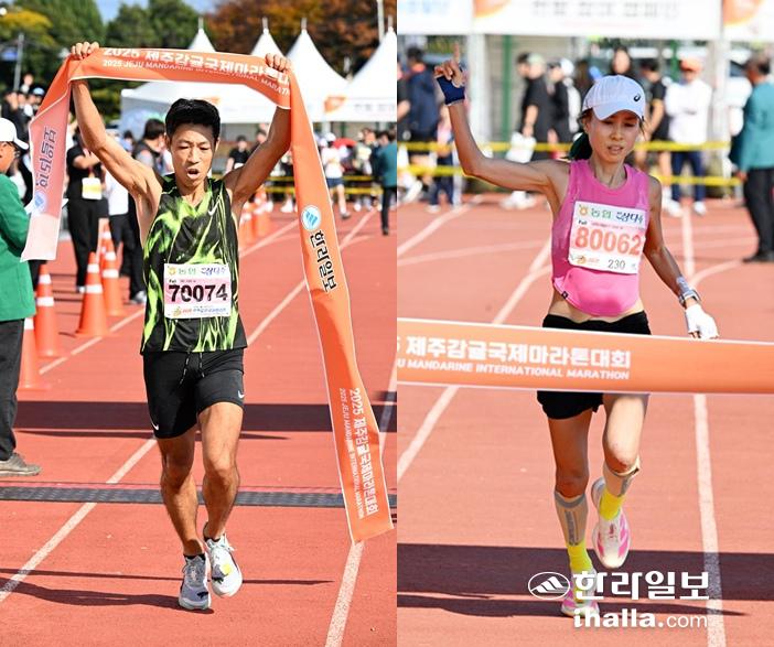 [한라일보] 역대 최대 규모로 치러진 2025제주국제감귤마라톤 풀코스 우승은 고성민(충남 아산시)·김유진(나주빛가람달리기)에게 돌아갔다.