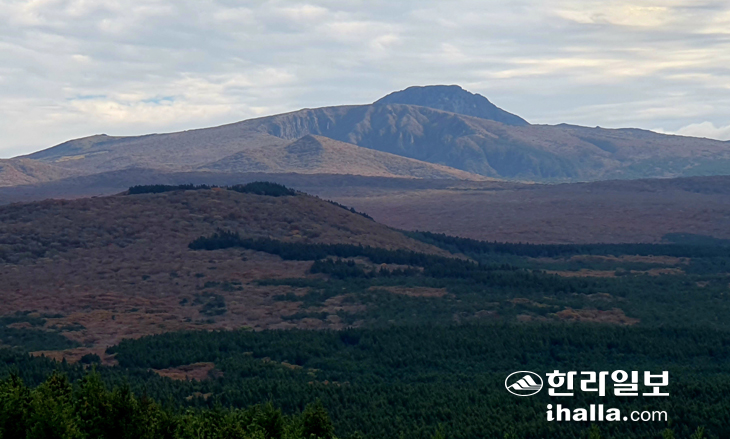 | 영실탐방로에서 바라본 볼레오름, 오른쪽은 이스렁오름이다. 사진=김찬수 |