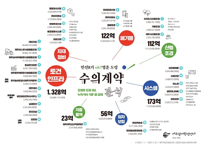 사단법인 참여환경연대는 이같은 내용을 담은 ‘민선8기 오영훈 도정 수의계약 실태조사’ 결과를 26일 발표했다.