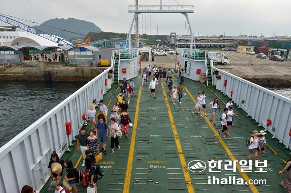 도항선서 승하선 차량 먼저 내린 후 보행자 이동