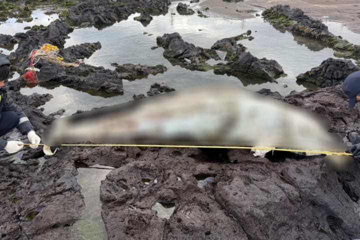 28일 제주해양경찰서에 따르면 이날 오전 8시 52분쯤 제주시 삼양해수욕장 인근 갯바위에서 돌고래 사체가 있다는 신고가 접수됐다.