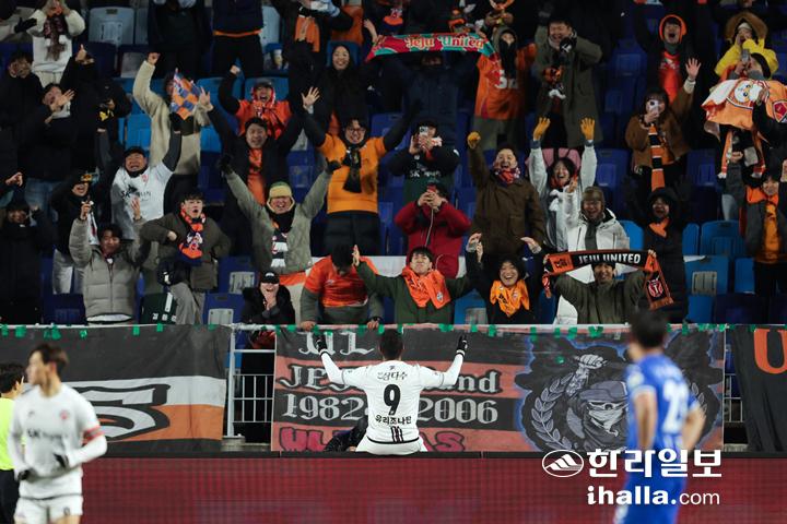 후반 시작과 함께 김준하 대신 투입된 유인수가 후반 14분가 상대 골키퍼 김민준과의 1대1 과정에서 결정적인 PK를 얻어냈고 유리 조나탄이 강력한 슈팅으로 마무리하며 선제골이자 결승골을 넣었다.