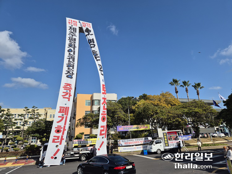 제주도는 선포식 당일에 피켓과 현수막 소지할 경우 행사장 출입을 제한하는 한편, 충돌에 대비한 안전 관리 계획을 세운 상태라고 전했다.