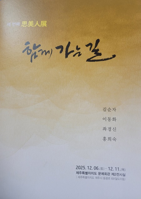[한라일보] 제주 여성 서예가 4인이 함께 마음을 모아 '또 다른 먹길'을 낸다. 이달 6일부터 제주문예회관 제2전시실에서 열리고 있는 세 번째 사미인전 '함께 가는 길'이다.