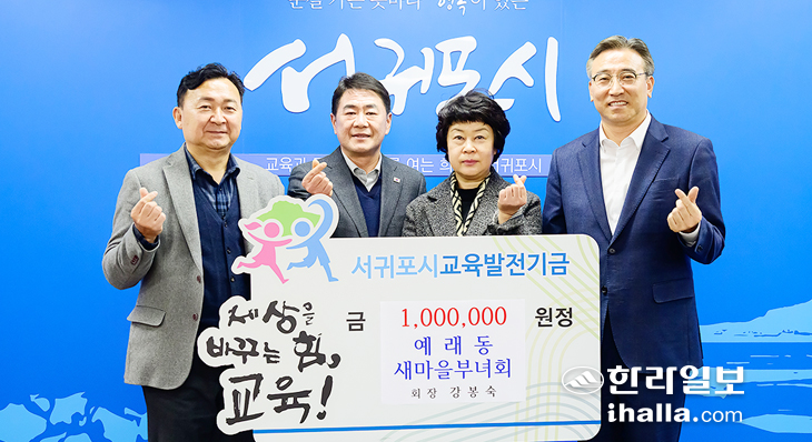 서귀포시 예래동새마을부녀회(회장 강봉숙)는 지난 4일 서귀포시를 방문해 부녀회에서 운영하는 각종 소득사업으로 마련한 100만원을 서귀포시교육발전기금에 기탁했다.