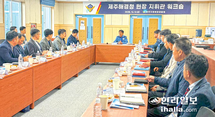 제주지방해양경찰청(청장 박상춘)은 지난 5일 지휘관 및 함·정장, 파출소장 30여 명 대상으로 동절기 해양사고 대비 방안 회의 및 지휘역량 증진을 위한 워크숍을 개최했다.
