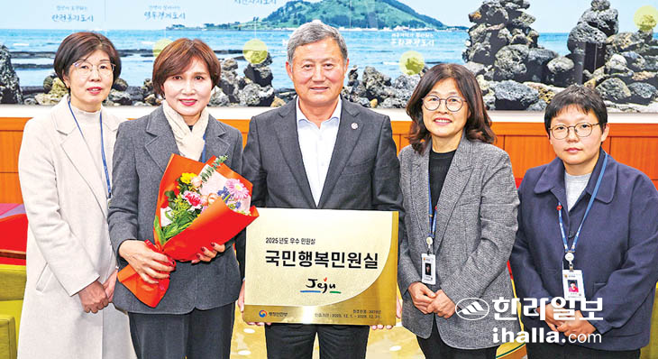 제주시는 지난 5일 시장 집무실에서 '국민행복민원실' 현판 전달 기념식을 개최했다.