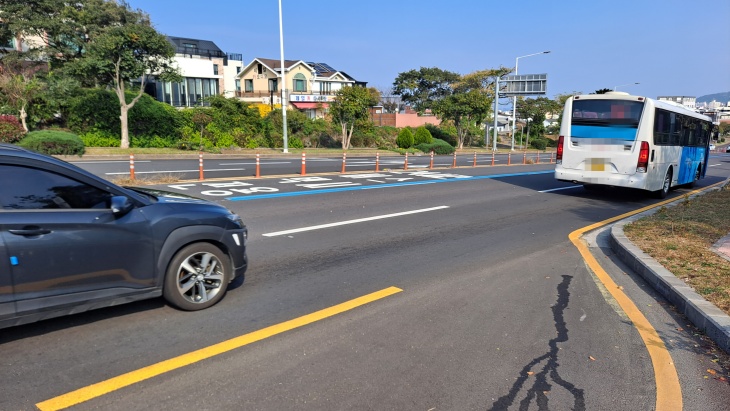 이와 함께 도는 제주공항 인근 해태동산(명신마을)에서 오라오거리로 이어지는 구간에서의 버스전용차로 위반 사례가 급증함에 따라 일부 구간(차선)에 대해 진입 차량이 빠져나올 수 있도록 조정했다. 서에서 동으로 진행하는 내리막길 150m가량을 기존 이중 파란 실선에서 한개는 실선으로 변경하며 버스전용차로인 1차로로 잘못 진입한 차량이 일반차량이 주행할 수 있는 2차로로 빠져나올 수 있도록 했다.