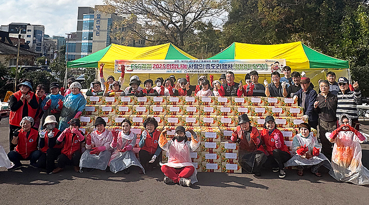 서귀포새마을금고(이사장 윤재순)와 서귀포새마을금고부녀회(회장 김은순)는 지난 19일 '2025 ESG경영 및 MG희망나눔 사랑의 좀도리 행사'를 맞이해 김장김치 750포기를 담그고 서귀포 지역 장애인 단체와 소외계층에 전달하며 안부를 살폈다.