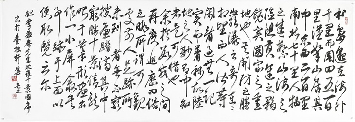 이번 전시는 지난해 여섯 번째 서전 '취병담을 노래하다'를 이은 자리다. 지난해 갑진년 '용의 해'를 맞아 조선시대 제주 관련 사료들을 찾으며 작품에 대한 고민을 이어가던 서예가는 제주의 절경 '영주10경' 중 하나인 '취병담'에 주목한다. 취병담은 '용이 사는 연못'이라 해 붙여진 '용연'의 옛 이름이다. 옛 선비들이 밤 뱃놀이하며 풍류를 즐기던 용연, 그 절벽에는 1739년 제주목사 홍중징이 '비취빛 벼랑이 병풍처럼 둘러쳐진 못'이라는 의미로 '취병담'이라고 초서로 새긴 글 등 1600∼1900년대의 마애명들이 있다.