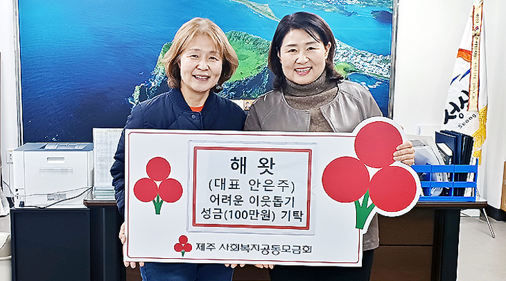 서귀포시 성산읍에 위치한 해왓 식당(대표 안은주)은 지난 23일 성산읍(읍장 김경범)을 방문해 어려운 이웃을 위해 써달라며 성금 100만원을 기탁했다.
