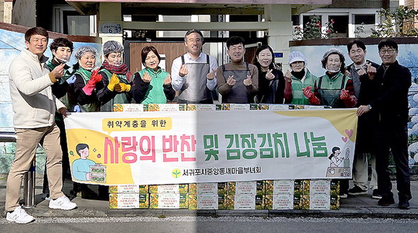 [한라일보] 서귀포시 중앙동새마을부녀회(회장 주정신)는 연말연시를 맞아 지난 26일 회원 15명이 참여한 가운데 사랑의 김장김치 나눔행사를 진행했다.