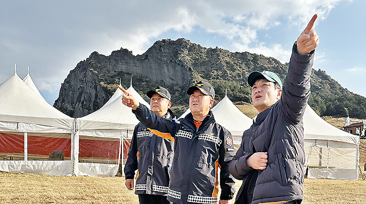 동부소방서(서장 강성부)는 29일 대규모 인파 운집에 따른 각종 안전사고를 예방하기 위해 오는 31일 열리는 성산일출축제 축제장 일원에서 사전 안전점검을 실시했다. 이날 ▷임시시설물의 설치 및 유지관리 상태 ▷소화기 비치 및 관리 등을 중점적으로 점검했다.