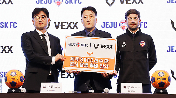 제주SK FC는 정관장 레드부스터스(KBL), 농심 레드포스(e스포츠) 등을 후원해온 V-EXX(대표 이정규)와 공식 용품 후원 계약을 체결했다.