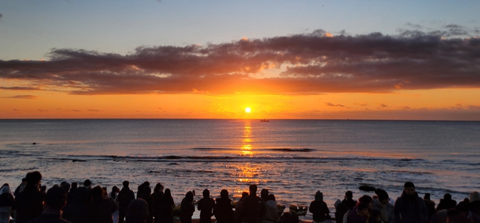 찬 공기에다 강풍까지.. 병오년 새해 첫 일출 구름사이로