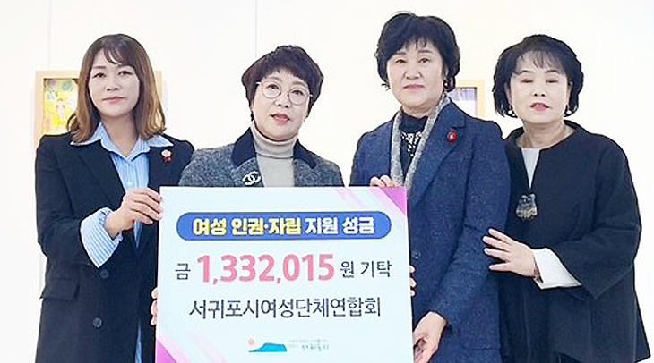 서귀포시여성단체협의회(회장 허숙희)는 지난달 30일 서귀포시청을 방문해 여성 인권 및 자립 지원 성금 130여 만원을 기탁했다.