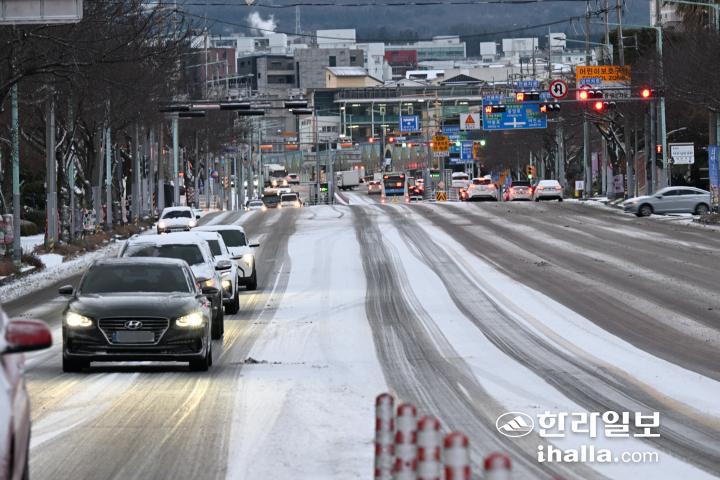 제주기상청 관계자는 “내린 눈이 얼어 붙어 도로 살얼음이 나타나는 곳이 많겠다”며 “젖은 도로가 얼면서 도로 살얼음이 나타나는 곳이 있겠으니 통안전과 보행자 안전에 각별히 유의하기 바란다”고 당부했다.