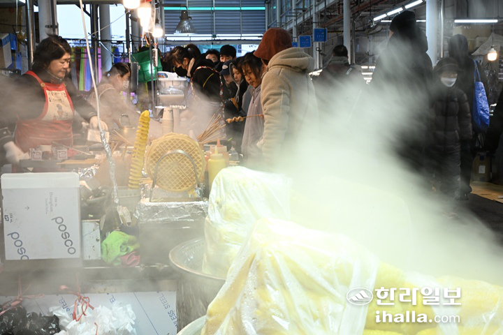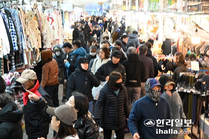 [한라일보] 2일 대설특보 속에서도 병오년 처음으로 열린 제주시 오일장에는 많은 인파가 몰려 한파를 무색하게 했다. 강희만 기자