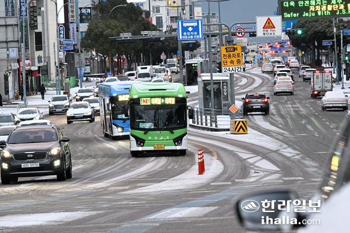 제주기상청 관계자는 "찬 공기 영향으로 내린 눈이 얼어붙어 빙판길이 나타나나는 곳이 많겠고 해안지역도 기온이 0℃ 안팎으로 떨어져 적은 도로가 어는 곳이 있는 만큼 교통안전에 유의해야 한다"고 말했다.