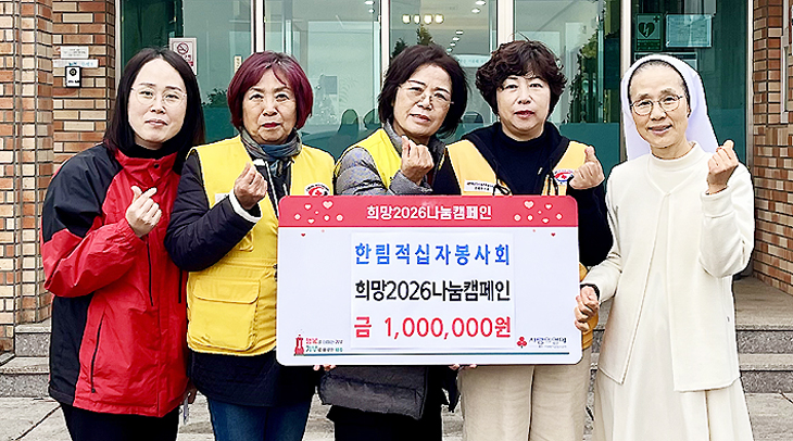 한림적십자봉사회(회장 송영실)는 최근 성이시돌복지의원에서 제주사회복지공동모금회(회장 강지언)에 희망2026나눔캠페인 성금 100만원을 전달했다.