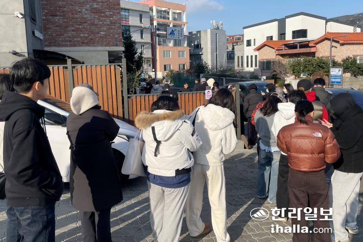이곳에서 만난 박모(45·한림읍 협재리)씨는 “아라동에 올 때마다 카페에 줄이 너무 길길래 검색해 보니 두쫀쿠를 판다고 해서 와봤다”며 “날이 춥긴 해도 요새 너무 유명해서 자녀와 함께 먹어보려고 기다리는 중이다”라고 말했다.