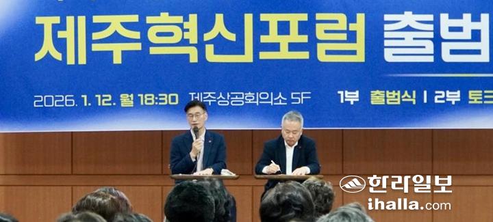 제주혁신포럼은 지난 12일 출범식을 개최하고 창립선언문을 통해 "2022년 7월 '도민정부 시대'를 표방하며 출범한 오영훈 도정은 지난 4년간 무능과 불공정으로 대표되는 정책을 남발하며 도민들에게 실망만 안겨줬다"고 비판했다.