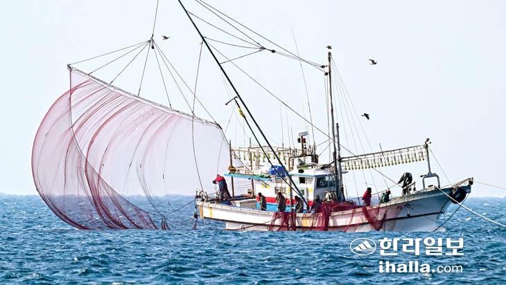 [한라일보] 17일 서귀포시 대정읍 동일리 앞바다에서 어민들이 겨울 자리잡이 조업을 하고 있다. 강희만기자