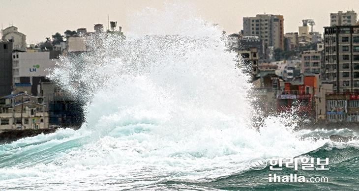 [한라일보] 제주 전 해상에 풍랑주의보가 발효된 20일 제주시 용담해안도로에 거센 파도가 물아치고 있다. 강희만기자